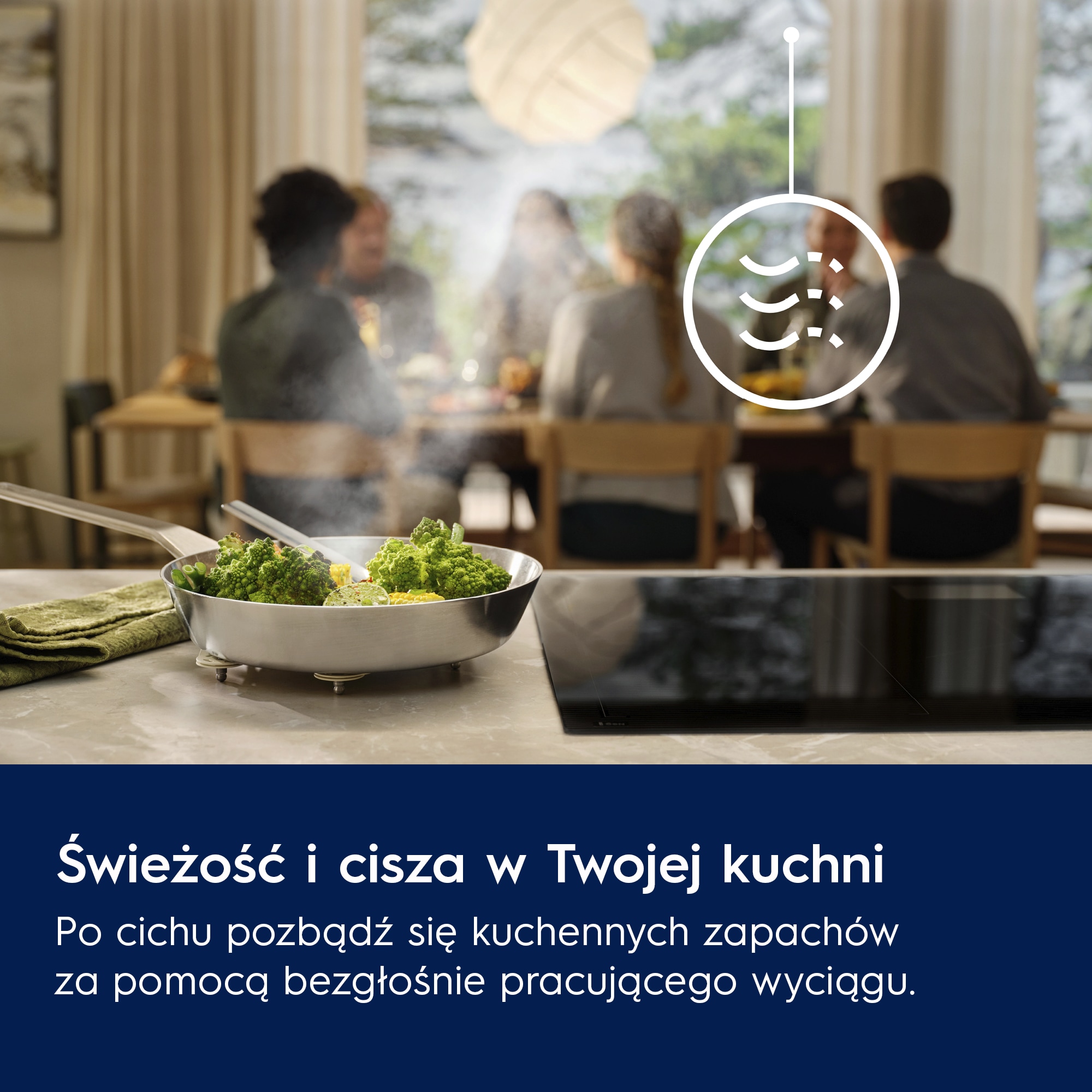 Ciesz się gotowaniem z rodziną i przyjaciółmi w kuchni wypełnionej świeżym powietrzem. Dzięki obniżonemu poziomowi hałasu i klasie energetycznej A lub wyższej nasze okapy skuteczniej oczyszczają powietrze, tworząc przyjazną atmosferę.