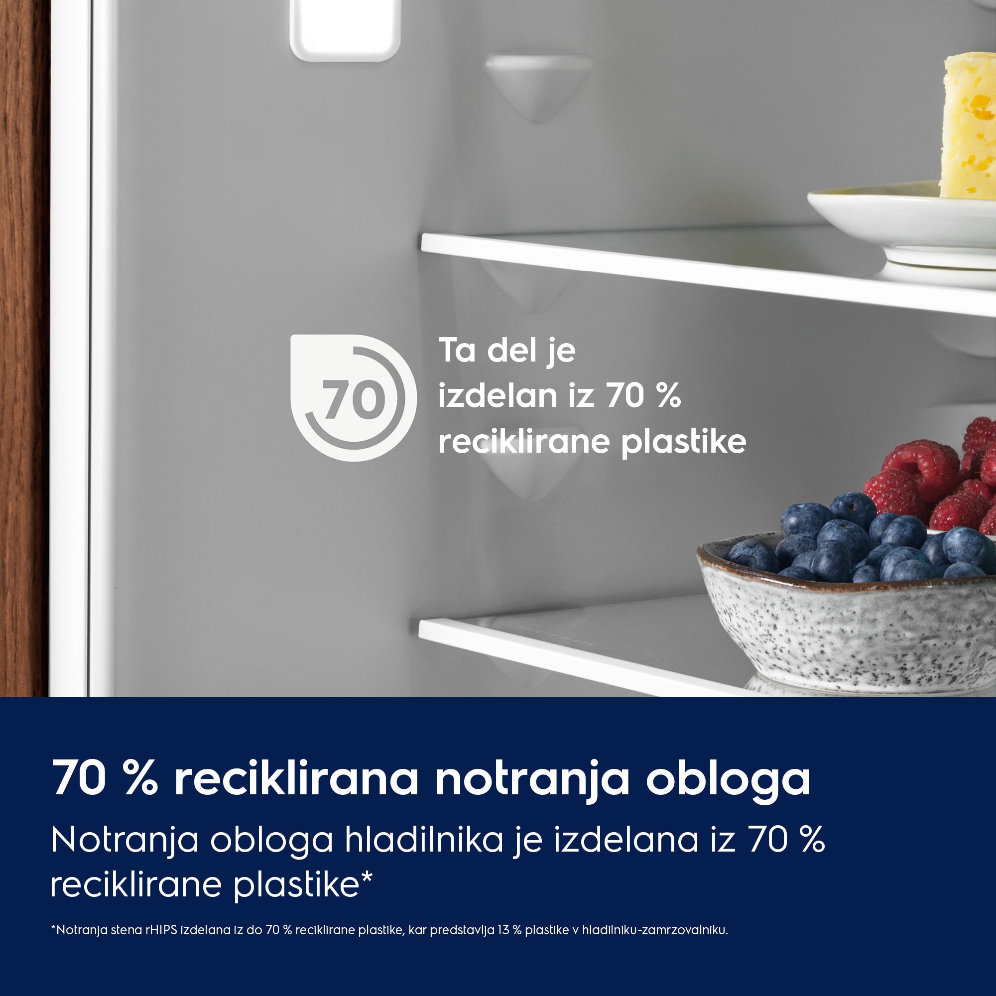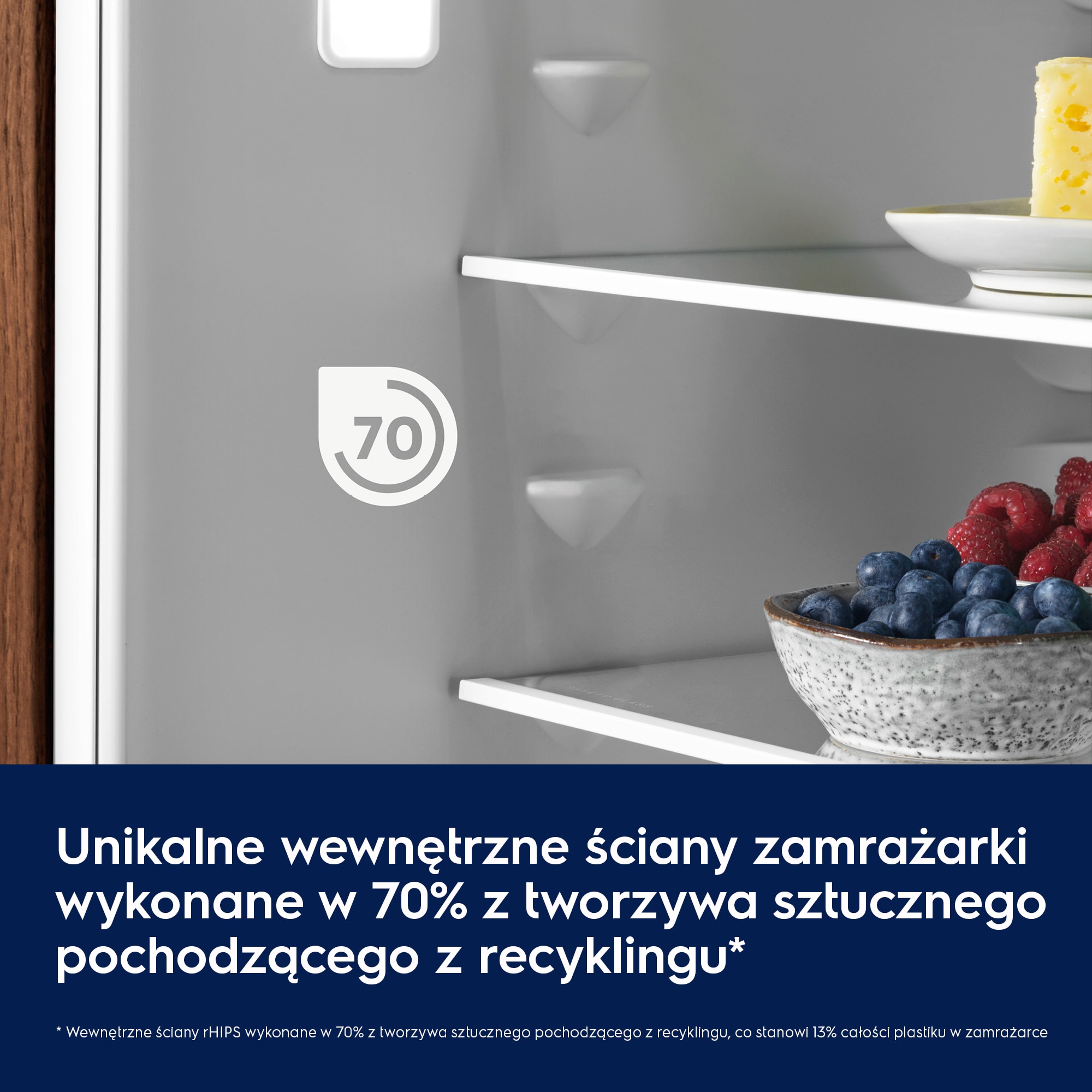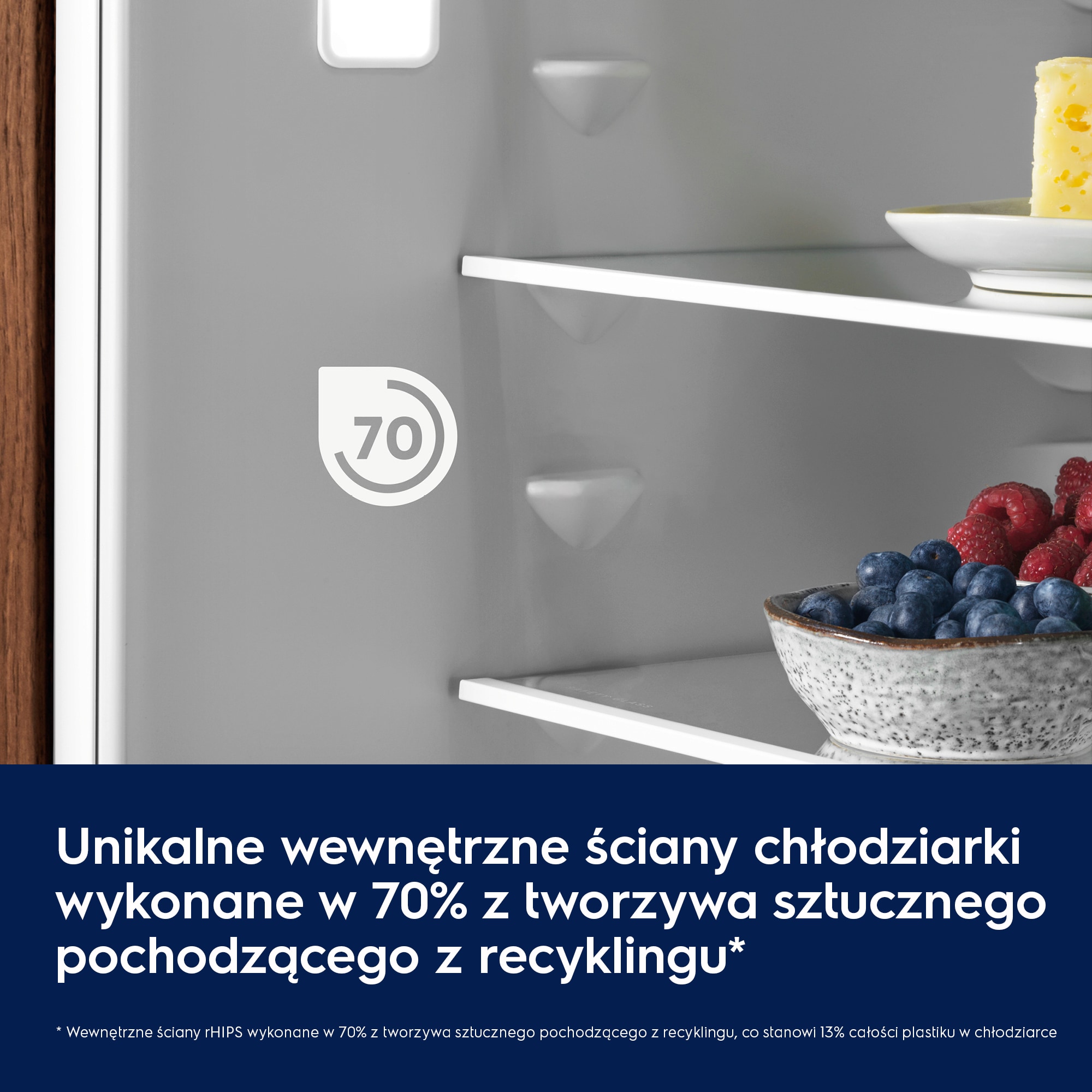 Wewnętrzna warstwa rHIPS jest wytworzona z przetworzonego plastiku - do 70%, co stanowi 13% całego plastiku w chłodziarce.