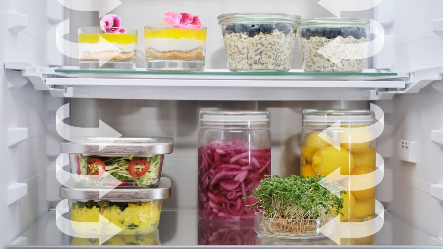 *W porównaniu do lodówek 500 ColdSense. Wg zewnętrznych badań czasu przydatności do spożycia serów miękkich i szynki gotowanej przechowywanych na półkach. Wyniki mogą się różnić w zależności od rodzaju żywności. Szacowana potencjalna redukcja odpadów oparta wyłącznie na wydajności urządzenia bez uwzględnienia zachowań użytkowników.