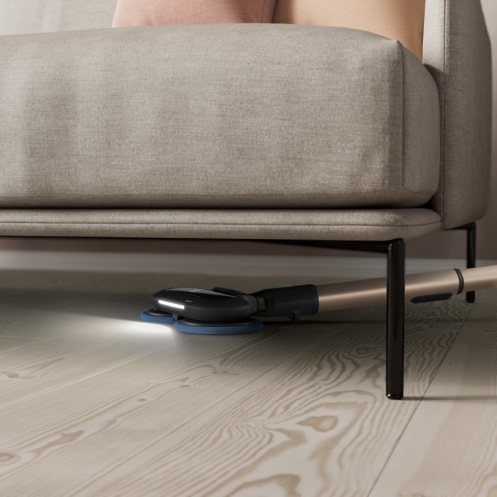Technologia aktywnego mopowania i stacja myjąca PowerPro: Dzięki nim, odkurzacz radzi sobie z trudnymi plamami, jednocześnie zapewniając delikatne traktowanie twardych podłóg i higieniczne mopowanie zawsze czystą wodą.