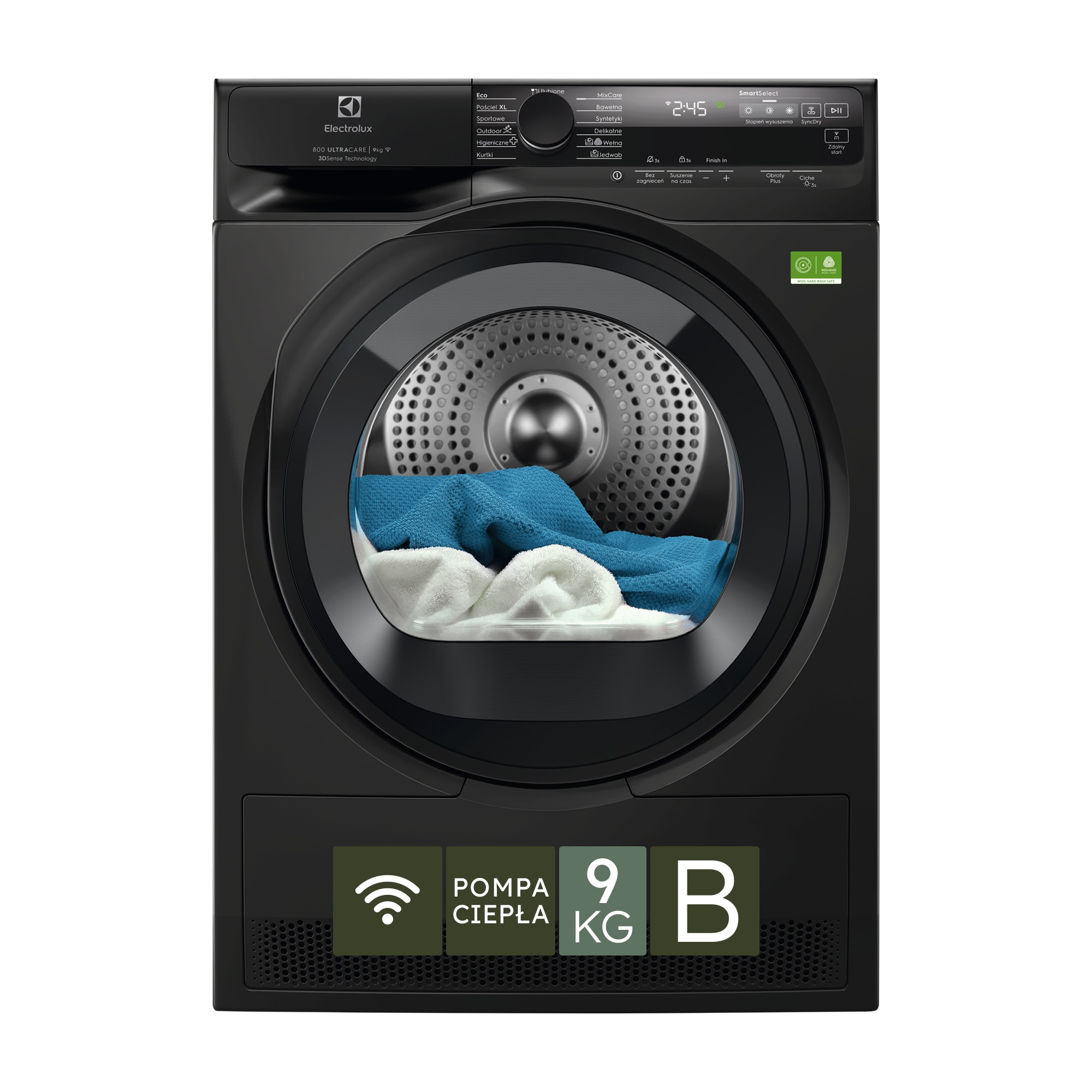 Suszarka z pompą ciepła UltraCare, pojemność 9 kg.