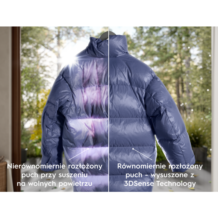 *Na podstawie zewnętrznego testu rezystancji termicznej dla prania osuszanego technologią 3DSense, przeprowadzonego zgodnie z ISO 11092.