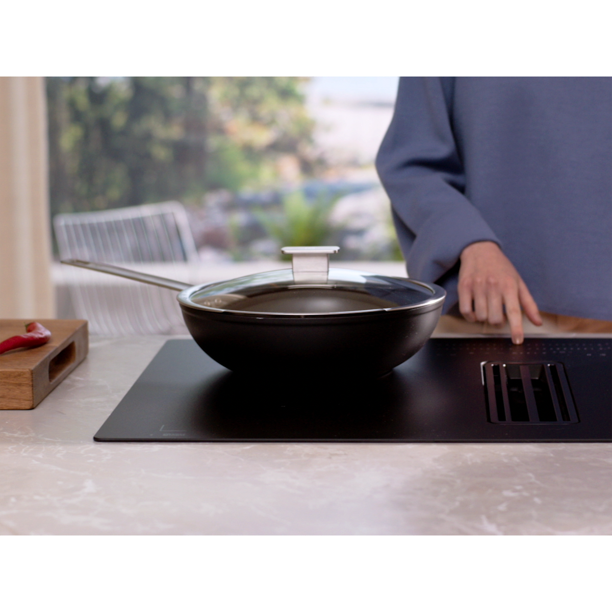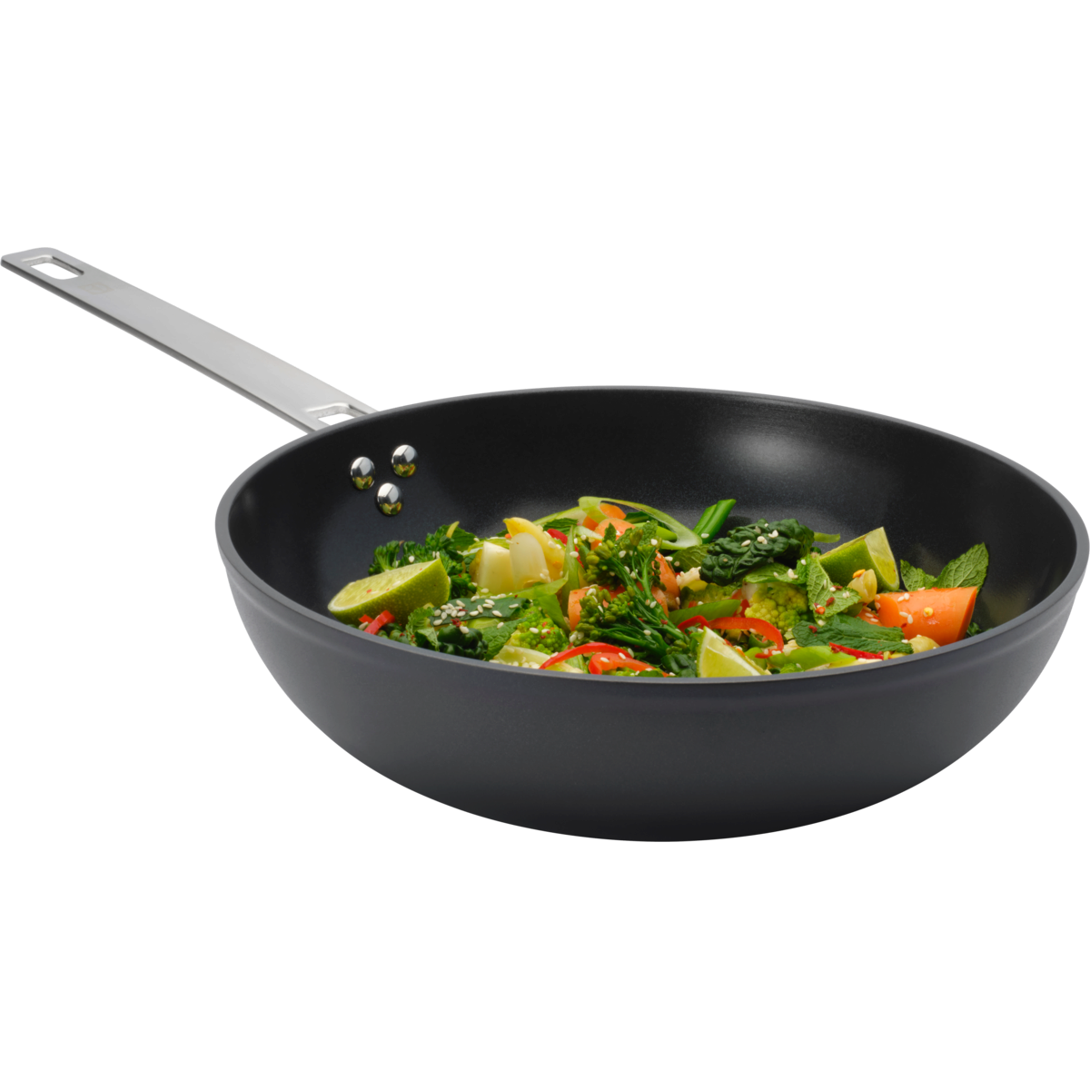 Patelnia Wok z linii Easy2Clean CookWell została wykonana z wytrzymałej stali nierdzewnej, co zapewnia równomierne podgrzewanie, tak istotne przy smażeniu techniką stir-fry. Patelnia jest pokryta ceramiczną, nieprzywierającą powłoką bez PTFE/PFAS, pozwala gotować z minimalną ilością tłuszczu i zapewnia wyjątkowo proste czyszczenie. Nadaje się do wszystkich rodzajów płyt grzewczych i do gotowania w piekarniku w temperaturze do 250°C.