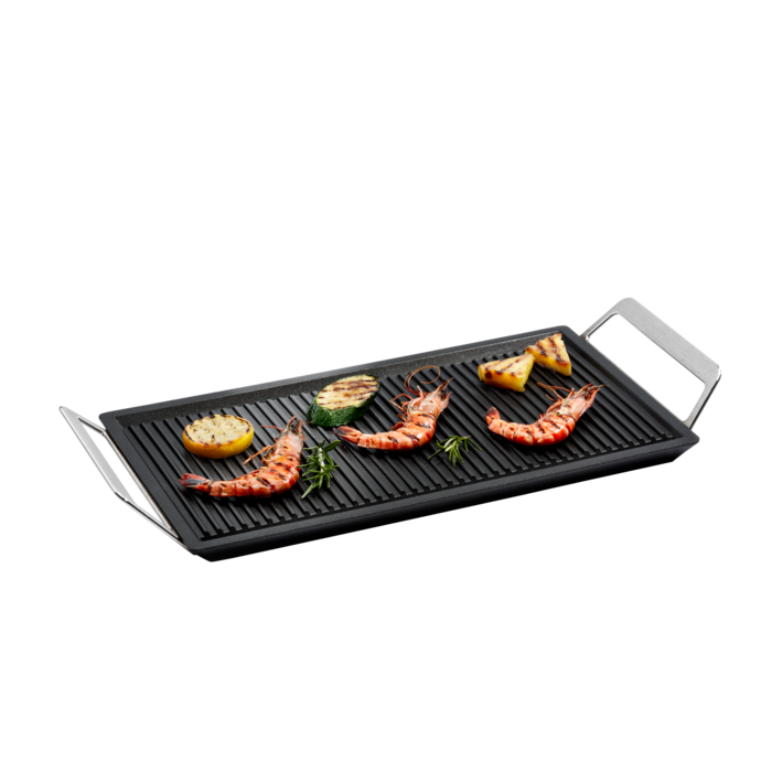 Wydłużony Infi-Grill przeznaczony jest do wszystkich rodzajów płyt grzejnych. Solidny, żeliwny grill z trwałą, trójwarstwową powłoką najwyższej jakości, która zapobiega przywieraniu potraw.