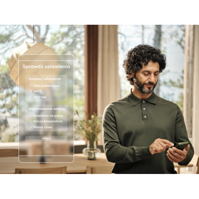 Piekarnik elektryczny ProAssist z funkcją AI TasteAssist, która, wykorzystując sztuczną inteligencję, pozwala ulepszać przepisy dzięki zastosowaniu pary - wystarczy przesłać dowolny przepis z internetu do aplikacji, a połączony z nią piekarnik automatycznie dostosuje temperaturę, czas pieczenia oraz użycie pary podczas gotowania.