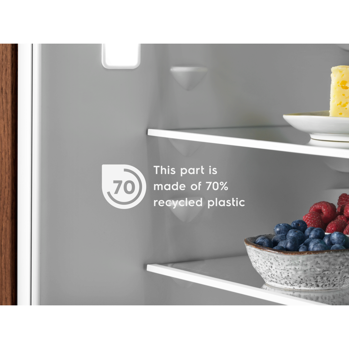 *Wewnętrzna warstwa rHIPS wykonana jest w 70% z plastiku pochodzącego z recyklingu, co stanowi 13% całkowitego plastiku w lodówce.