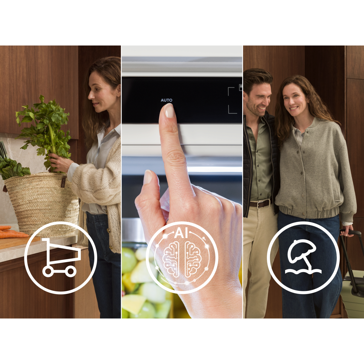 Lodówka GreenZone 700 z funkcją AI CoolAssist inteligentnie dopasowuje chłodzenie do Twoich codziennych nawyków, dbając o świeżość przechowywanych produktów. Technologia No Frost zapogiega powstawaniu szronu, system TwinTech® utrzymuje idealną wilgotność, dzięki czemu żywność pozostaje świeża i soczysta na dłużej, a technologia Cooling 360° pozwala rozprowadzić chłodne powietrze do najdalszych zakątków wnętrza lodówki.