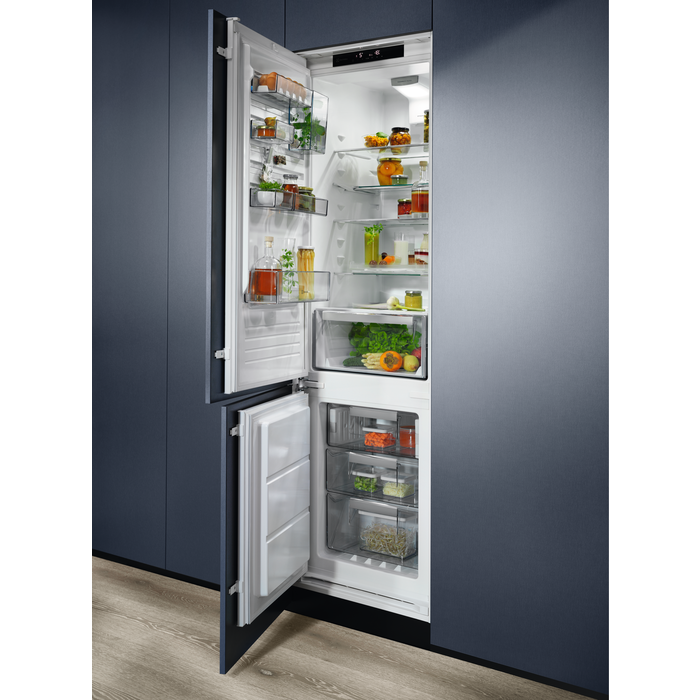 Lodówka z dolnym zamrażalnikiem z technologią TwinTech No Frost, elektronicznym sterowaniem dotykowym i wyświetlaczem LED.