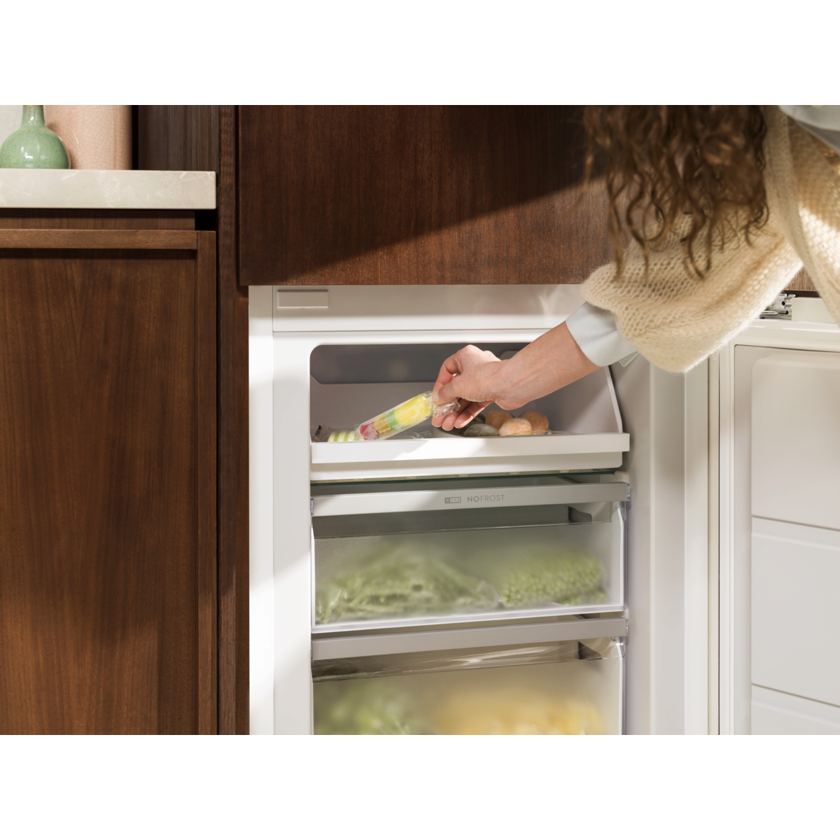 Lodówka GreenZone 700 inteligentnie dopasowuje chłodzenie do Twoich codziennych nawyków, dbając o świeżość przechowywanych produktów. Technologia No Frost zapogiega powstawaniu szronu, a system TwinTech® utrzymuje idealną wilgotność, dzięki czemu żywność pozostaje soczysta na dłużej. Praktyczne rozwiązania, takie jak sygnał otwartych drzwi i wysuwana półka, ułatwiają codzienne korzystanie z urządzenia.
