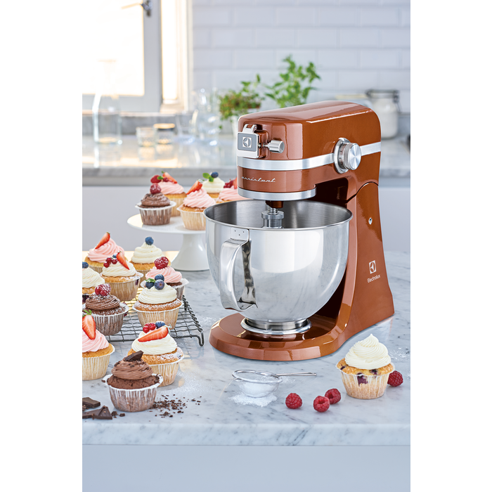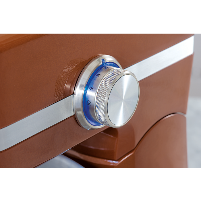 Nowoczesny i stylowy robot kuchenny Kitchen Assistent™ z silnikiem o mocy 1000 W, wielostopniową regulacją prędkości oraz miskami w dwóch rozmiarach, kolor brązowy.