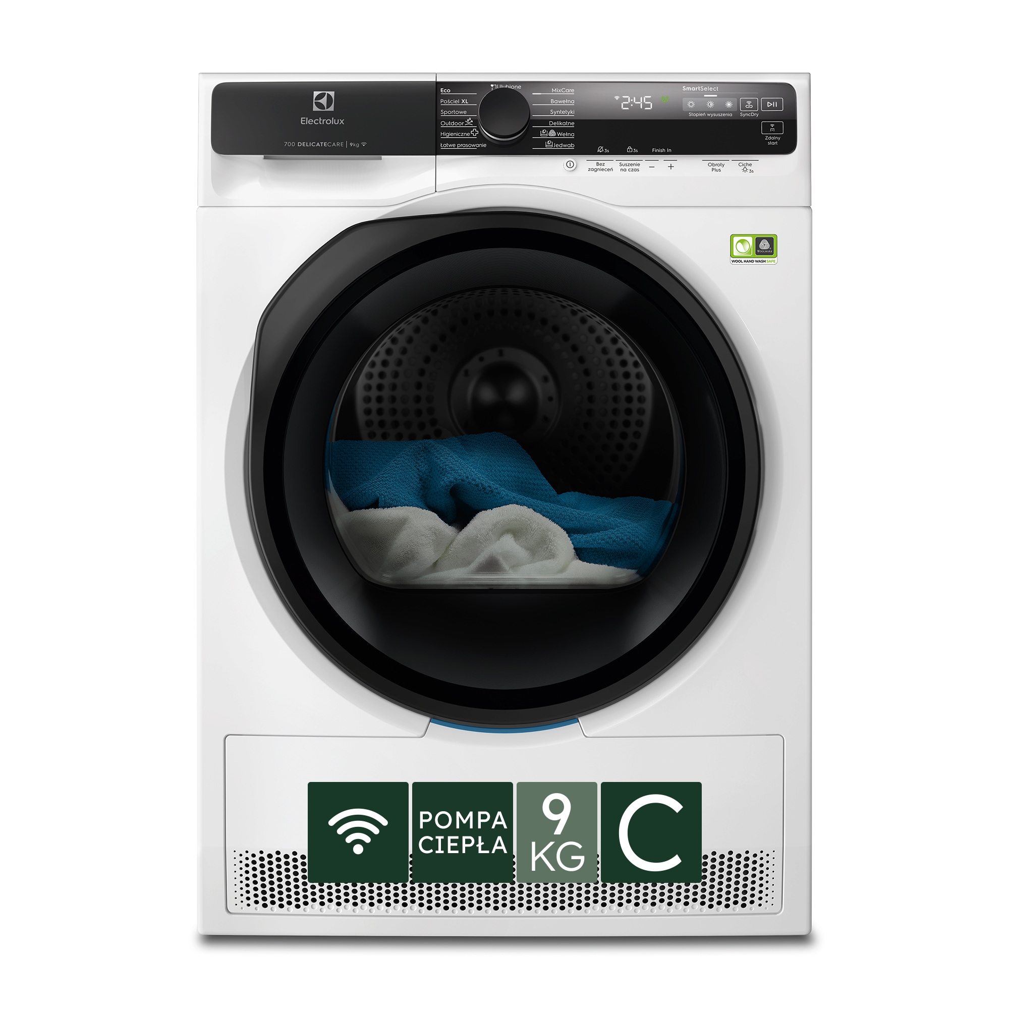 Suszarka z pompą ciepła DelicateCare, pojemność 9 kg.