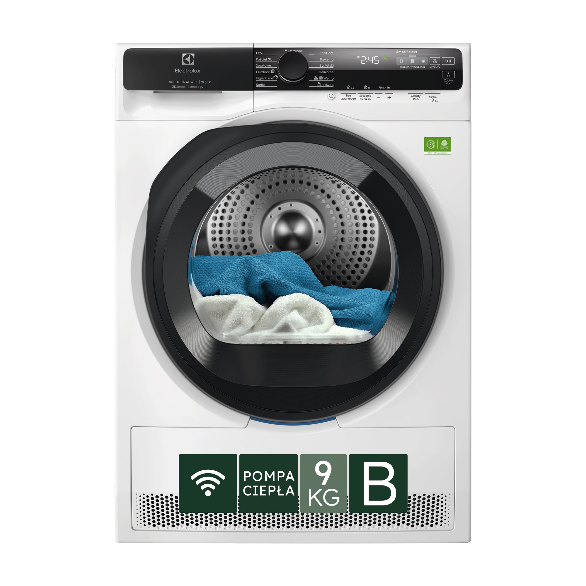Suszarka z pompą ciepła UltraCare, pojemność 9 kg.