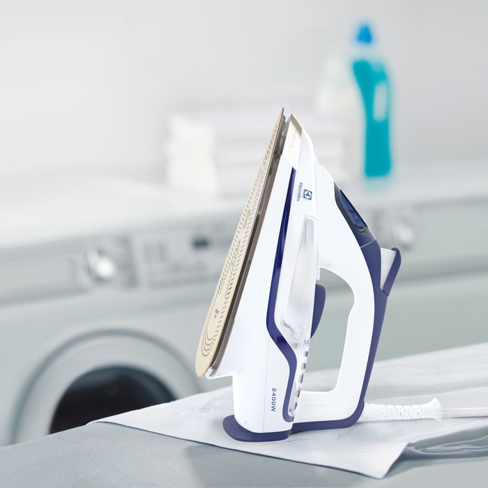 Żelazko Precision4Safety z systemami Anti-calc i zapobiegającym kapaniu, wskaźnik gotowości do pracy, wyrzut pary 130g/min, moc 2200 W, kolor niebieski.