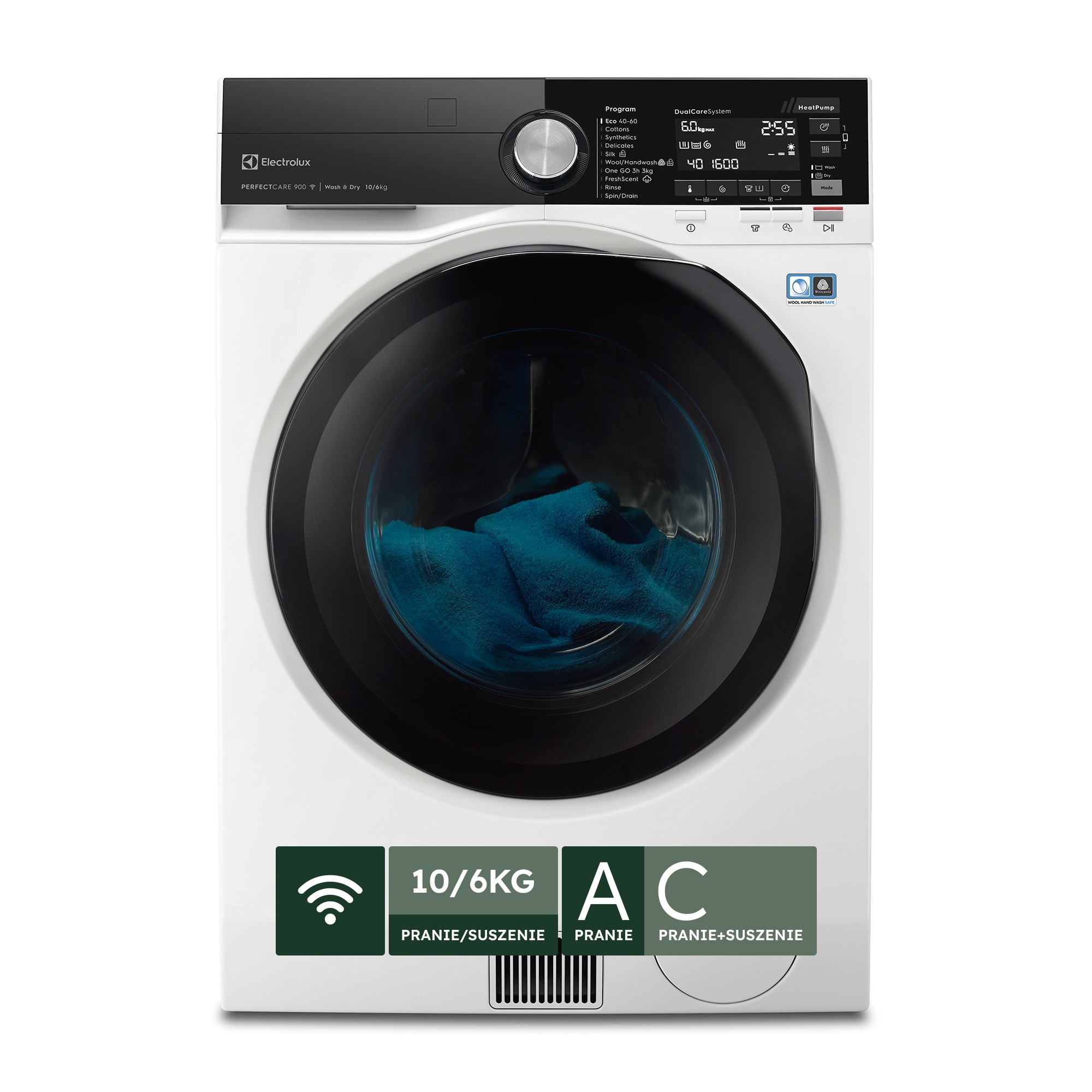 Pralko-suszarka ładowana od frontu PerfectCare 900 EW9W161BC o pojemności prania 10 kg i suszenia 6 kg to idealne rozwiązanie do bezpiecznego prania i suszenia odzieży. Wyposażona w system DelicateCare, urządzenie dostosowuje odpowiednią temperaturę i ruchy bębna do rodzaju tkaniny, zapewniając ochronę odzieży. Technologia SensiCare reguluje czas prania w zależności od wielkości załadunku, co pozwala na optymalne zużycie energii i wody. Program FreshScent odświeża ubrania za pomocą pary, redukując zagniecenia i ułatwiając prasowanie. Zintegrowany wyświetlacz umożliwia intuicyjne sterowanie funkcjami, a technologia DualCare® pozwala na pranie i suszenie bez ryzyka uszkodzenia tkanin. Dzięki klasie energetycznej A i maksymalnej prędkości wirowania 1600 obr./min,w połączeniu z nowoczesnymi technologiami pralko-suszarka zapewnia efektywną pielęgnację ubrań.