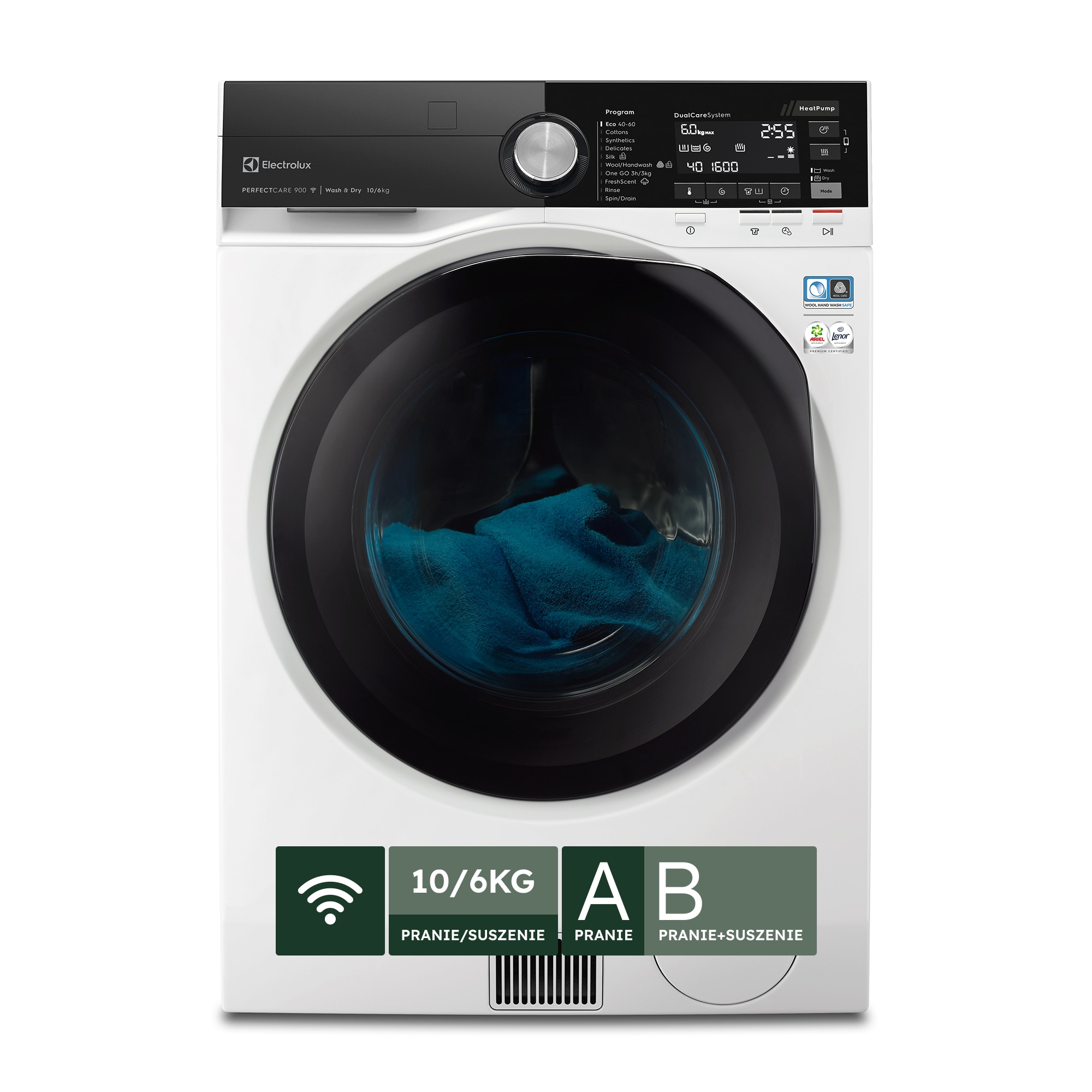 System DualCare® umożliwia bezpieczne pranie i suszenie, eliminując ryzyko skurczenia tkanin*