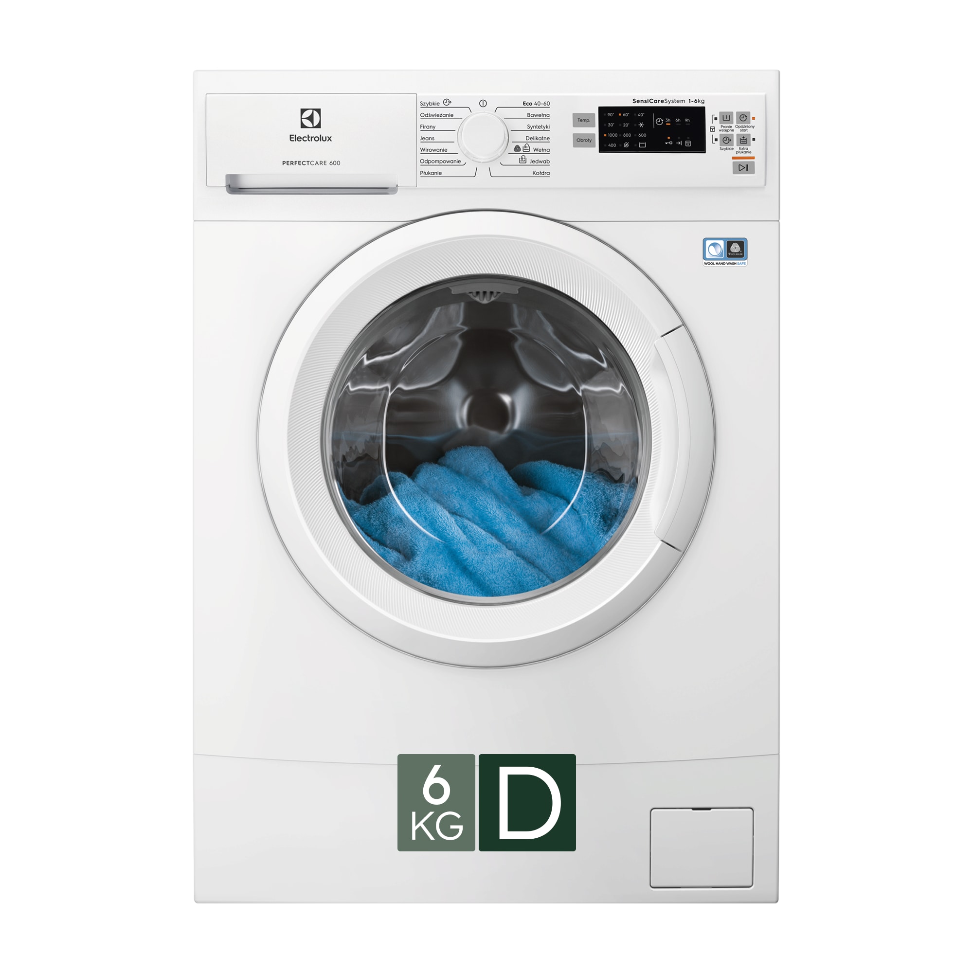 Pralka ładowana od frontu PerfectCare 600 z systemem SensiCare, programem Mini 20 minut i funkcją opóźnienia startu, pojemność 6 kg.