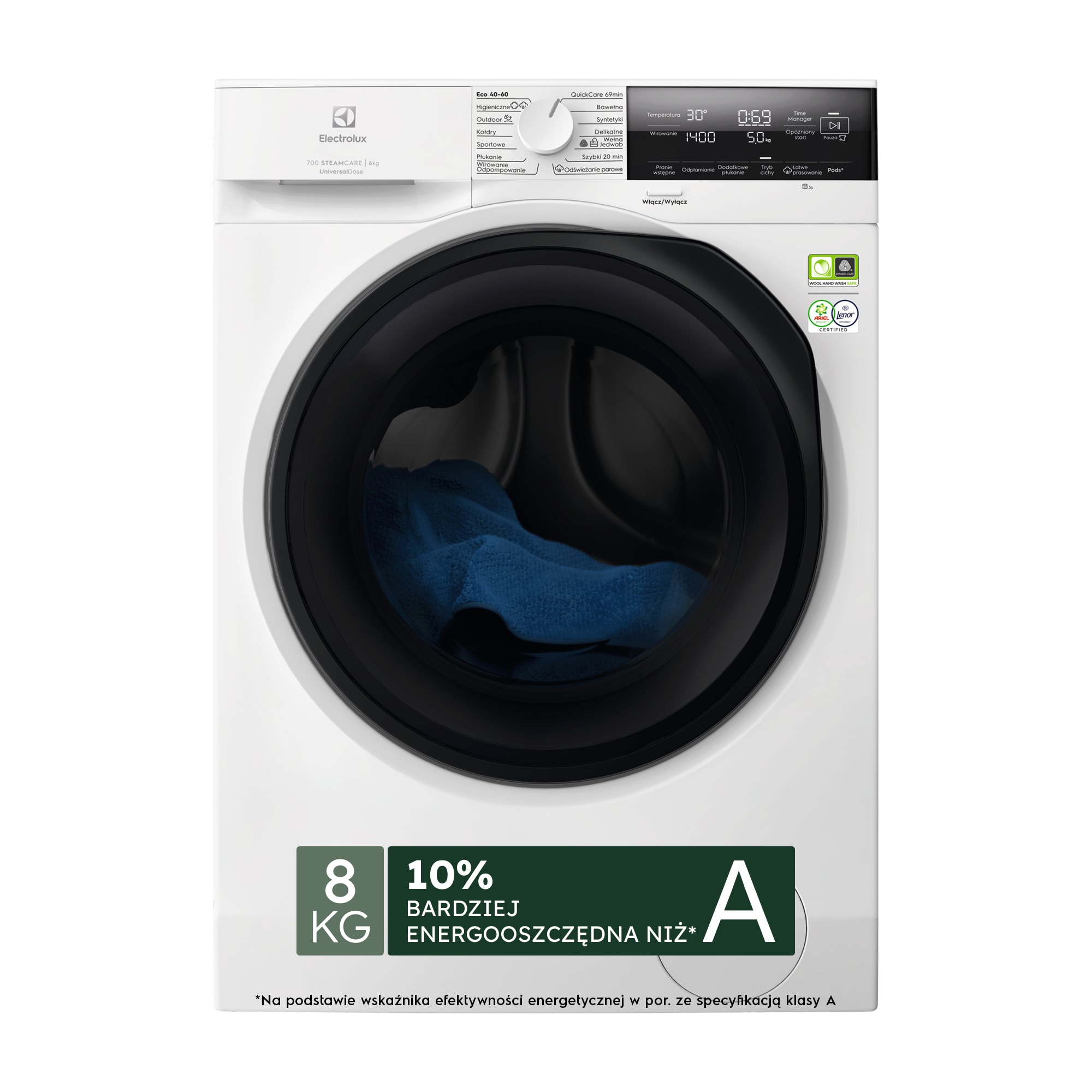 Ta pralka Electrolux EcoLine przewyższa najwyższą klasę energetyczną A, oszczędzając 10% więcej energii. Pralki Electrolux EcoLine wybiera się ze względu na ich najwyższą klasę energetyczną i nasze najlepsze funkcje oszczędzania zasobów podczas użytkowania.