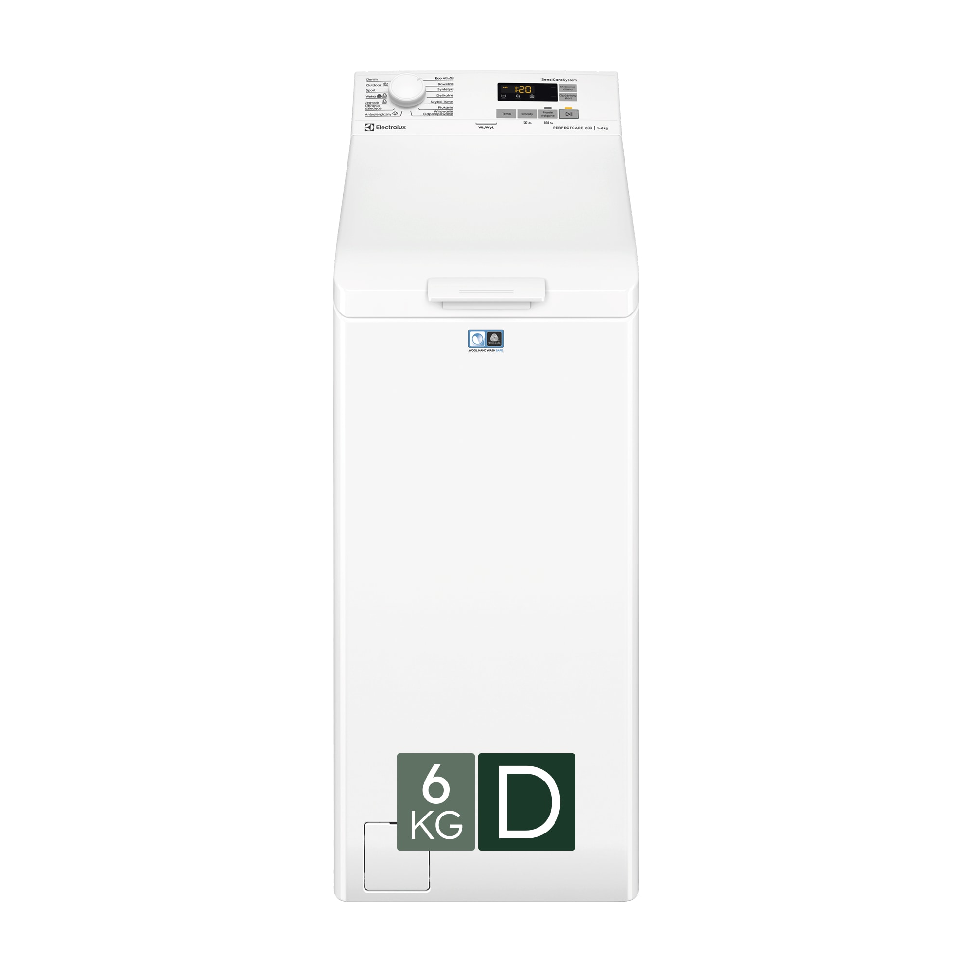 Pralka ładowana od góry PerfectCare 600 z systemem SensiCare, opcją TimeSave i funkcją opóźnienia startu, pojemność 6 kg.