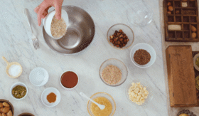 25 g zmielonych migdałów, 50 g płatków owsianych, 12 g siemienia lnianego, 12 g nasion dyni