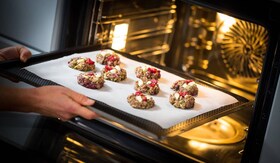 Ulep osiem małych kulek. Rozpłaszcz je na papierze do pieczenia. Piecz przez 15-20 min. w temp. 200°C