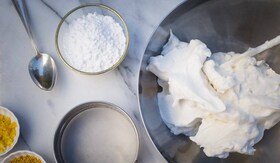 Beza: 3 białka / szczypta soli / 125 g brązowego cukru / 125 cukru pudru