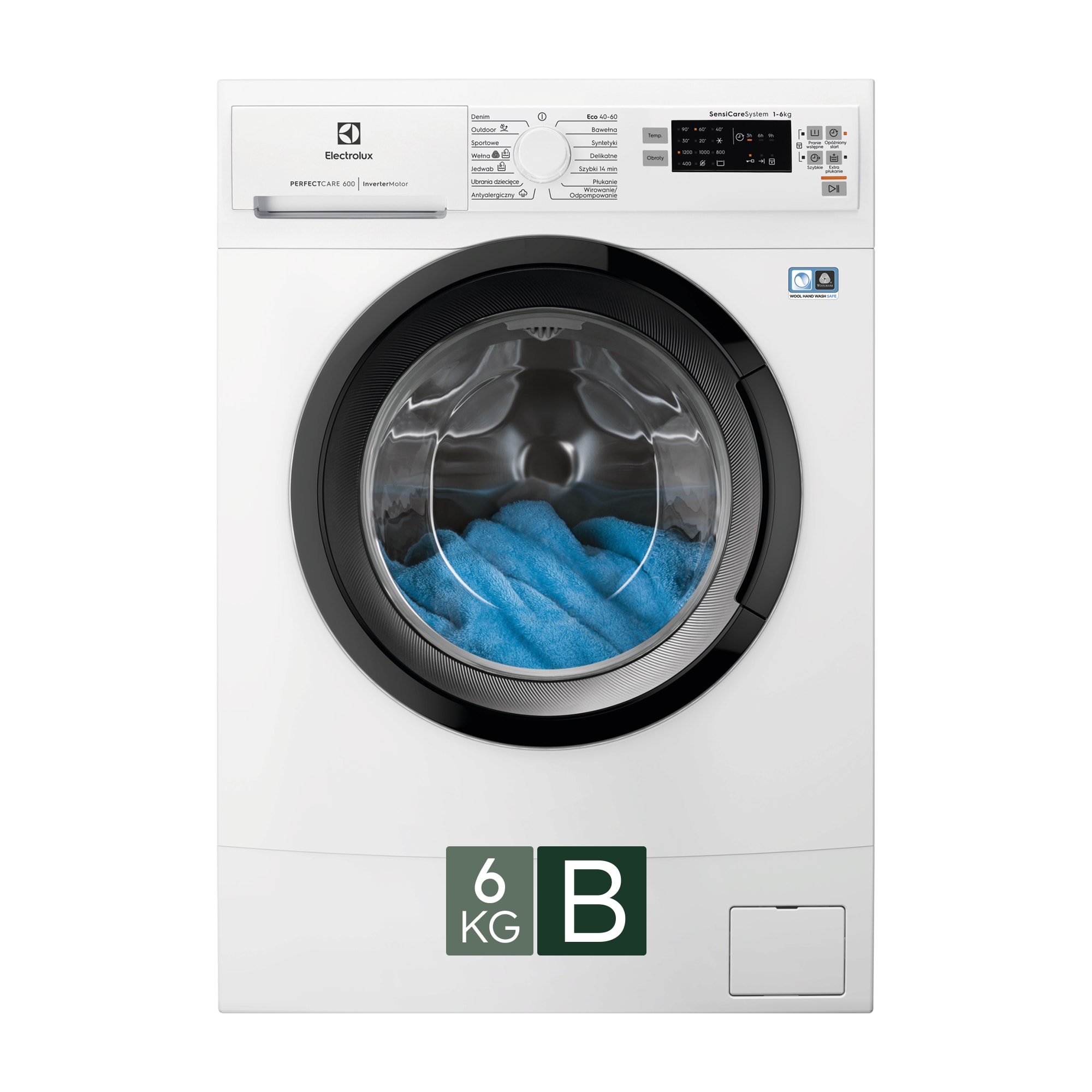 Pralka ładowana od frontu SensiCare, pojemność 6 kg.