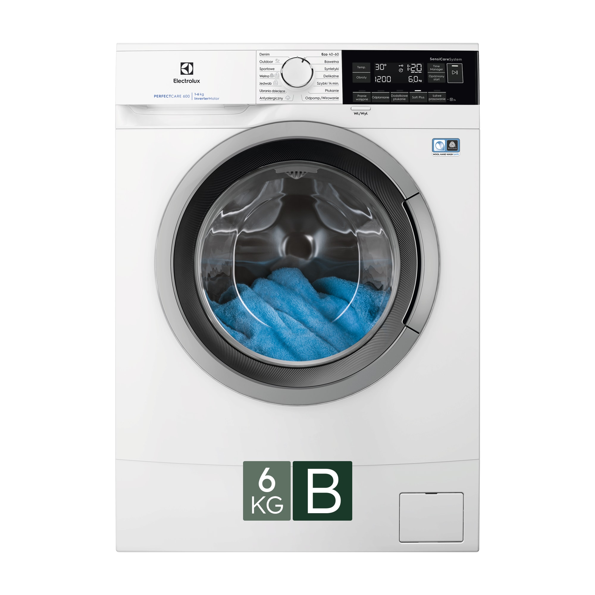 Pralka ładowana of frontu SensiCare, pojemność 6 kg.