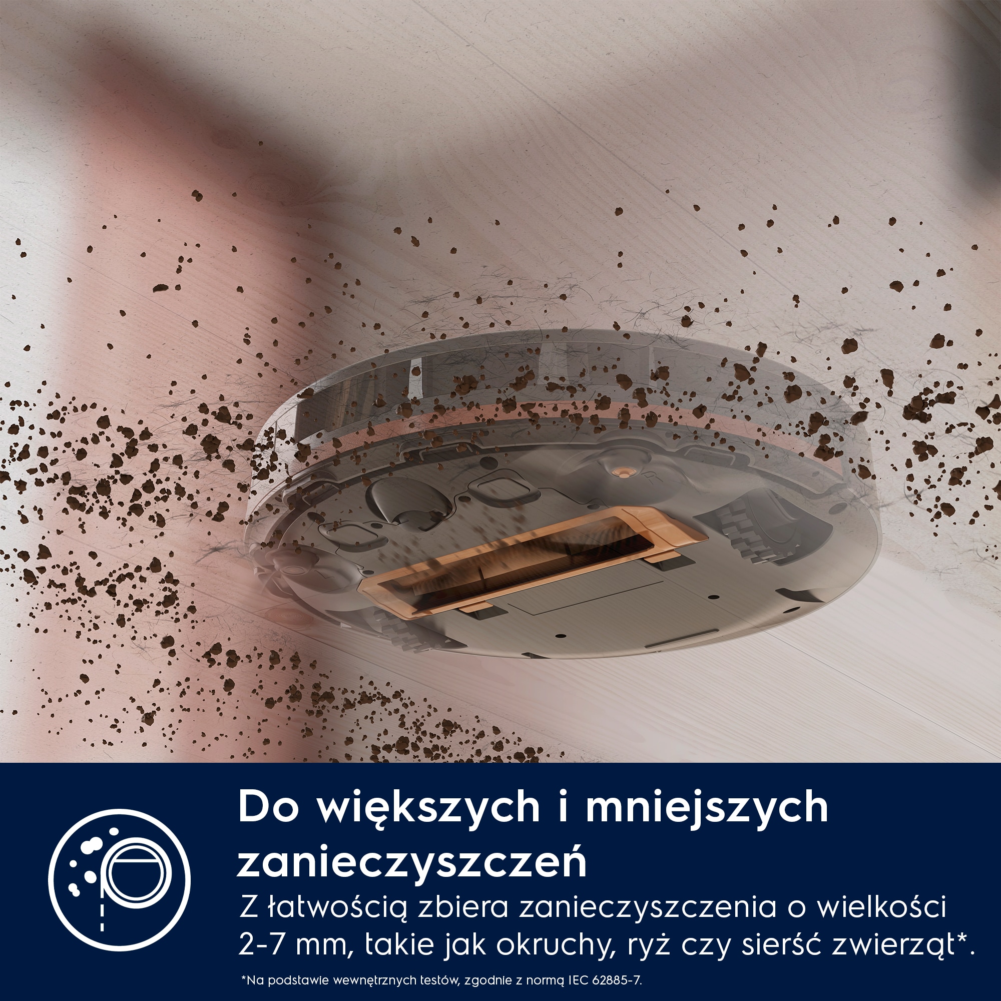 Duża siła ssania sprawia, że odkurzacz zbiera nawet małe cząsteczki, takie jak sierść zwierząt