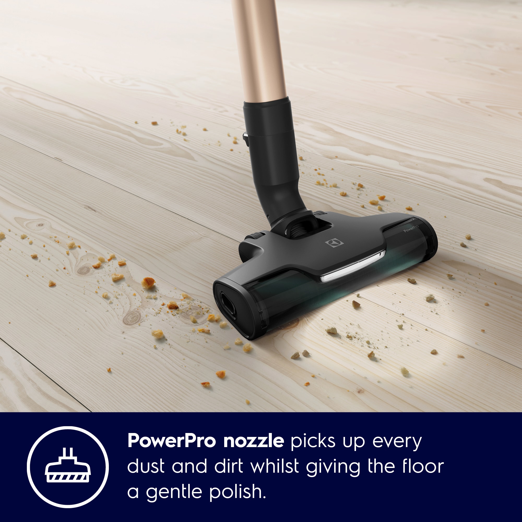 Szczotka PowePro do podłóg twardych, usuwa drobny kurz, jak i większe zanieczyszczenia, pozostawiając efekt polerowania. Oświetlenie LED z przodu pozwala dostrzec kurz. Szczotka pasuje do modeli Power Hygienic 800 oraz Power Ultimate 800.