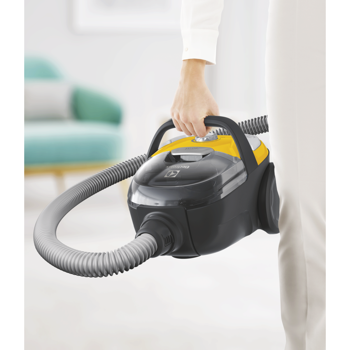 Odkurzacz bezworkowy CompactGo Cyclonic dzięki lekkiej i kompaktowej konstrukcji, bezworkowemu systemowi oraz elektroszczotce 2w1 sprawia, że odkurzanie staje się proste i wygodne. Urządzenie skutecznie czyści zarówno twarde, jak i miękkie powierzchnie, ograniczając kontakt z kurzem i zapewniając komfortowe, bezproblemowe sprzątanie każdego dnia