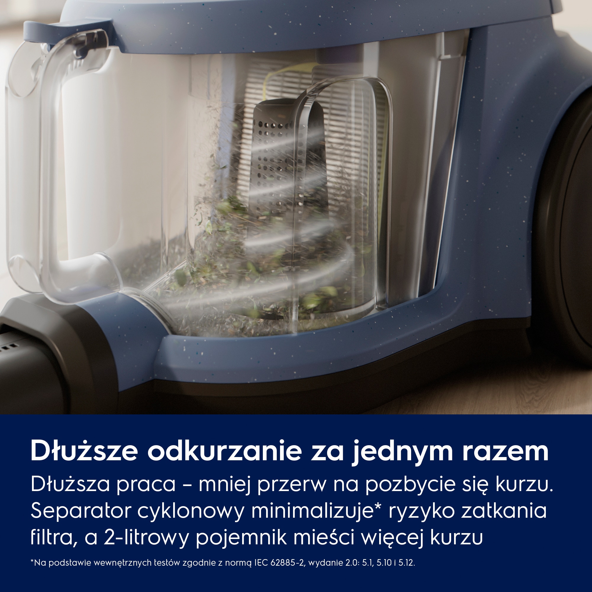 *Na podstawie wewnętrznych testów filtracji mikrocząstek kurzu o wielkości 0,3–10 mikronów zgodnie z normą IEC 62885-2:2021, 5.14 z użyciem standardowych cząstek piasku/kurzu.