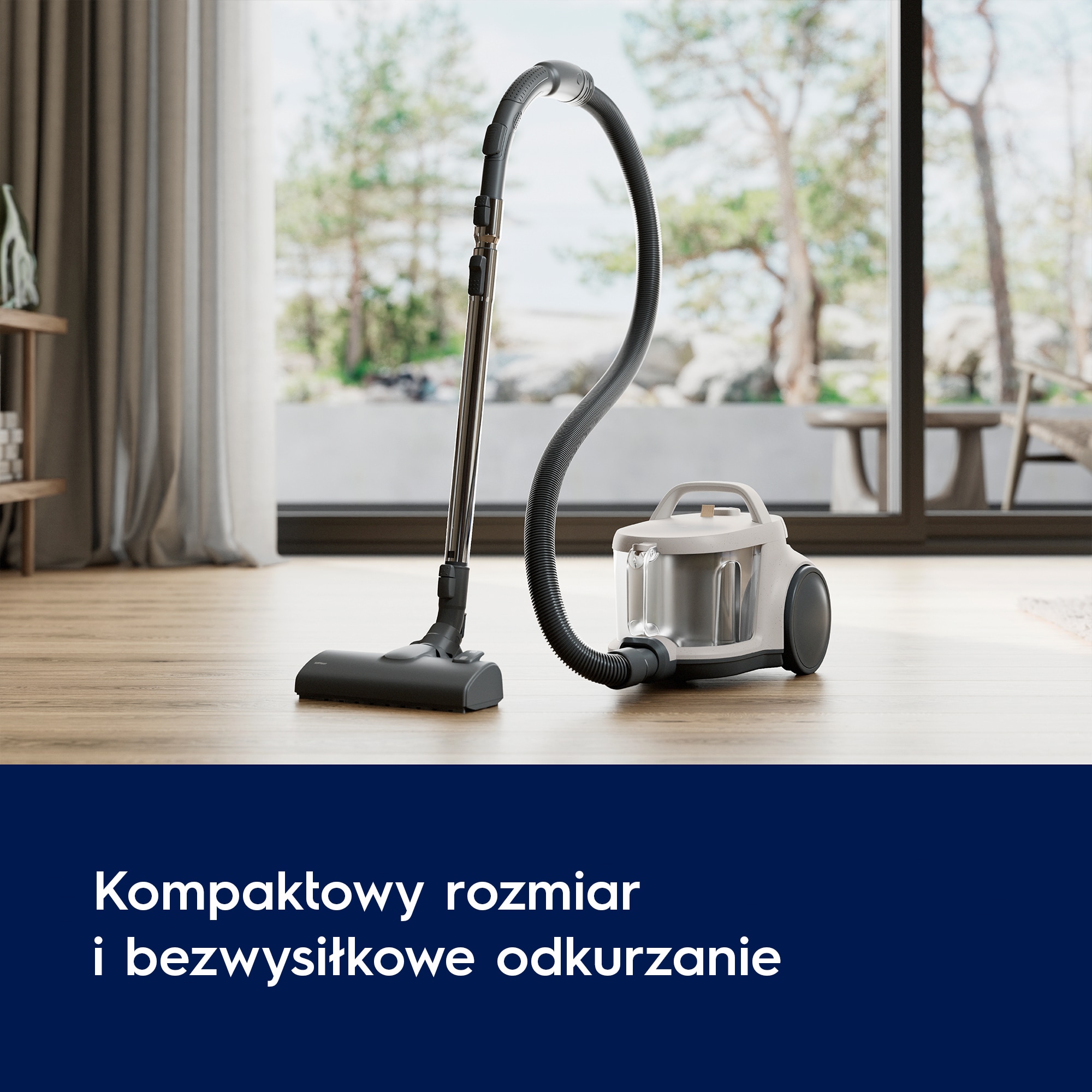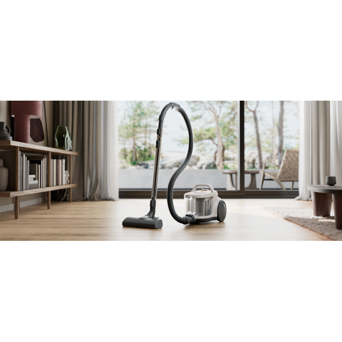 Ten odkurzacz zaprojektowano z myślą o wygodzie i wyposażono w pojemnik na kurz 2 l, kompaktową konstrukcję do łatwego przechowywania i separator cyklonowy zabezpieczający przed zatykaniem. Filtracja HEPA i ekologiczne tworzywo sztuczne pochodzące z recyklingu sprawiają, że jest wydajny i przyjazny dla środowiska.